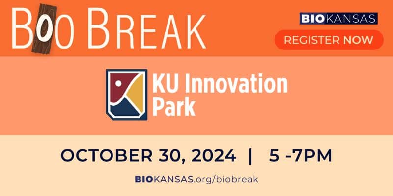 Join BioKansas at KU Innovation Park for this quarter’s Bio Break! Known as Boo Break this month, join BioKansas staff, members of the board, and other folks in the network at the Park on October 30 between 5-7 p.m. The event will be at 2029 Becker Drive – the Park’s main facility – in the Chamber Room.