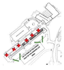 If you come to the Park daily, you may have noticed some work in the parking lot. The construction of solar carports is set to start on Monday, September, 23. The lower level of the parking lot will remain available, but it may fill up. The Park has secured overflow parking in the Park & Ride lot down the hill from our facilities. Check out the map below. We appreciate your patience as we add some covered parking and solar power to the Park.